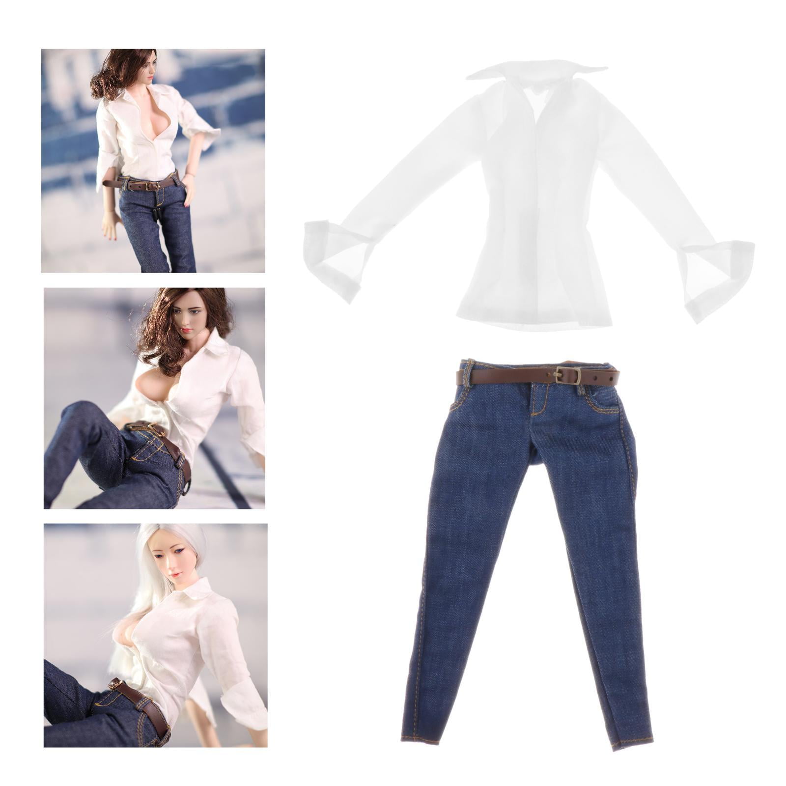 1 6 Women Shirt And Jeans Clothes Set Suits For Ht Girl Bodysuit 12 Inch Anime Figures Jeans Belt Shirt Walmart Com
