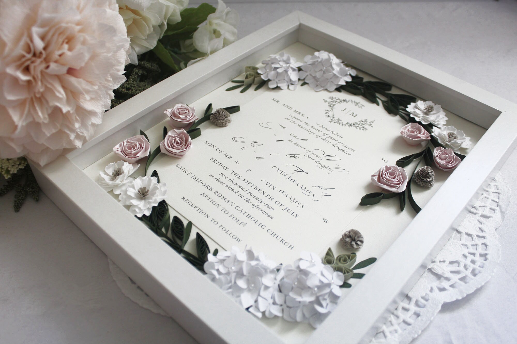 Wedding Invitation Keepsake Quilling Paper Flowers Winter Etsy Uk